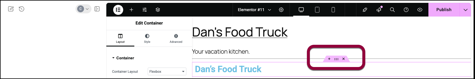 In this example, we’ll edit the Home page of the Dan’s Food Truck website.