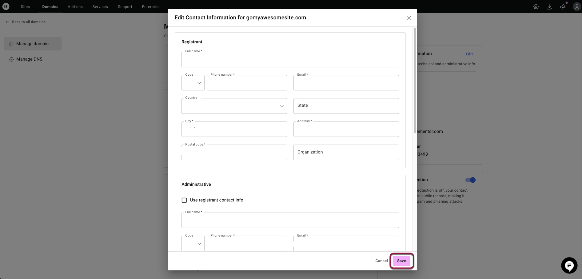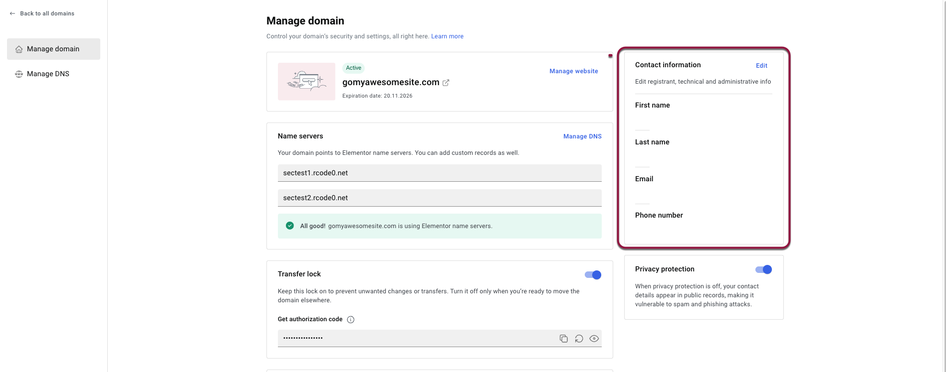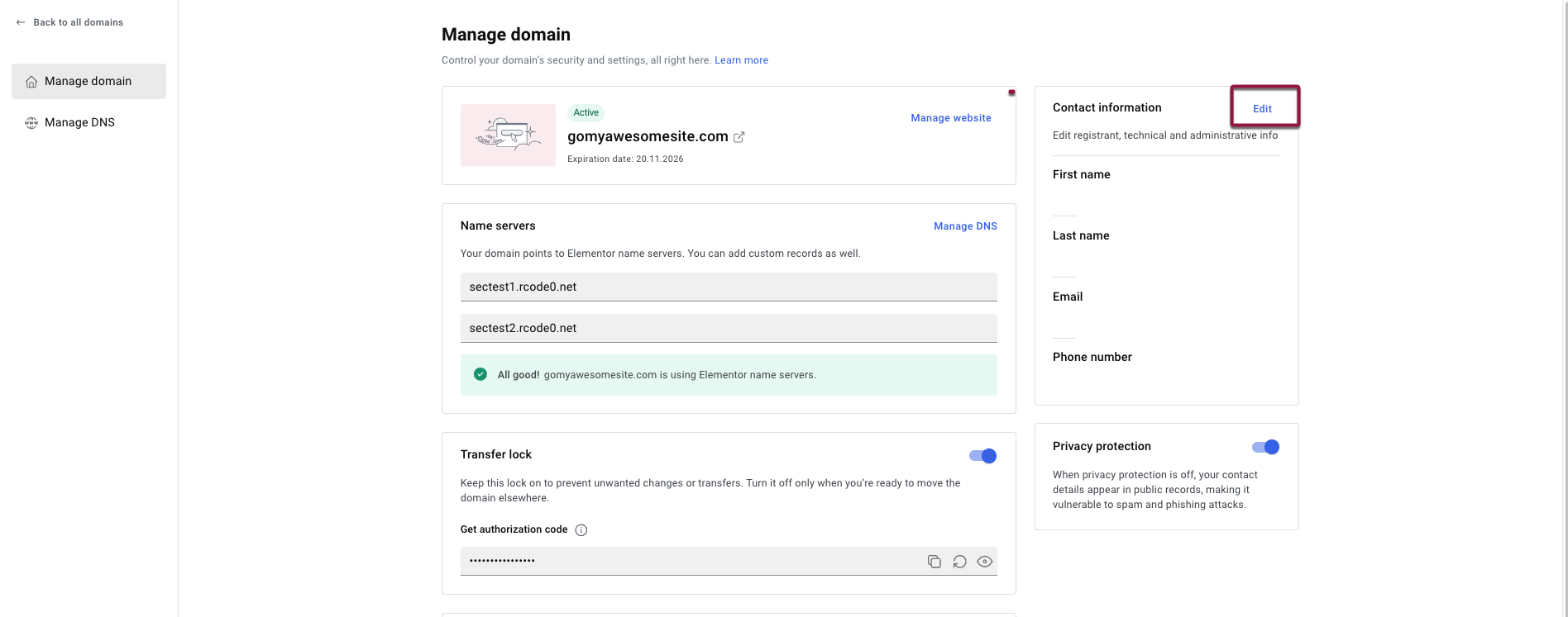 In My Elementor, you can update this information at any time from the Domains Overview page in your dashboard.