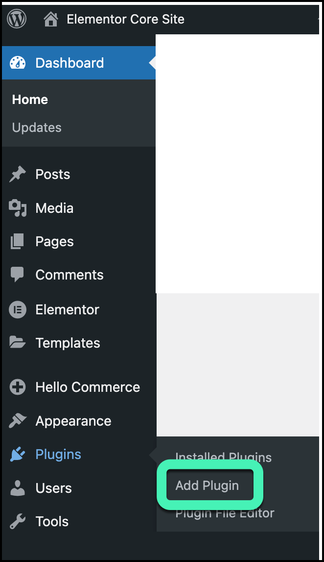 - Go to WP Admin and navigate to Install Plugin.