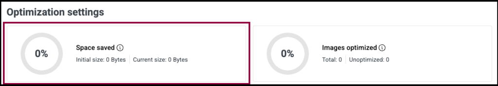 At the top of the dashboard, you’ll see stats about your images:- The total size of your images before and after optimization.