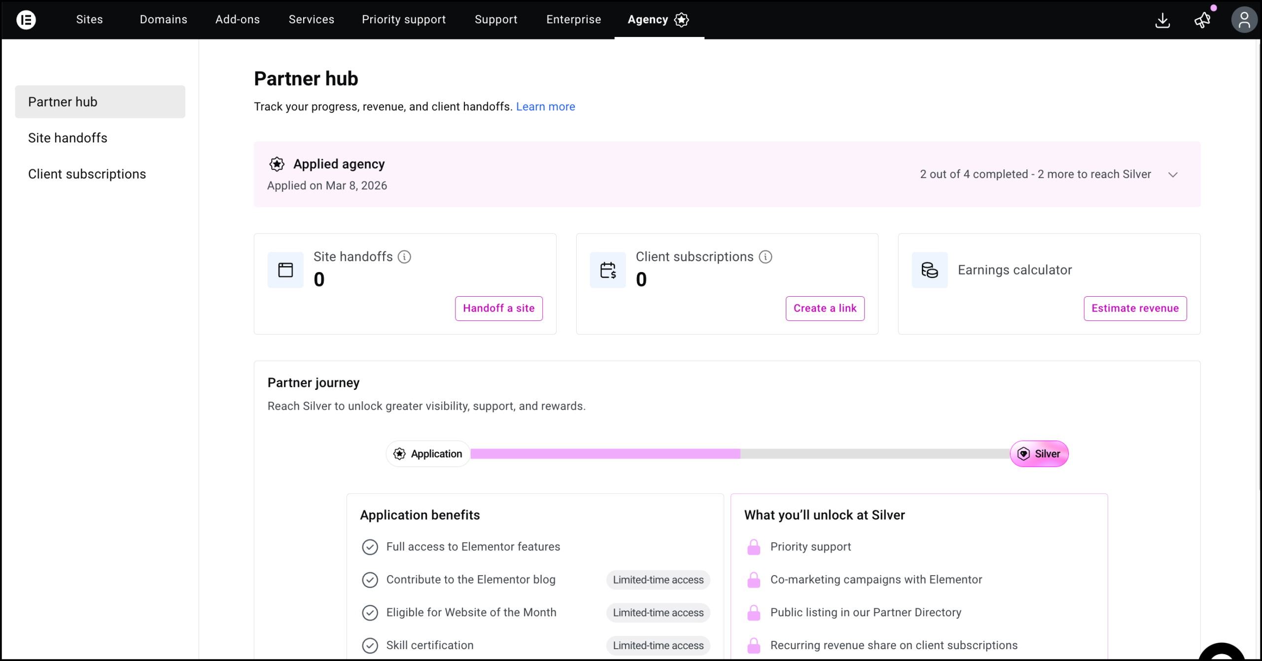 4. Fill out a few questions about your agency and submit them to Elementor.