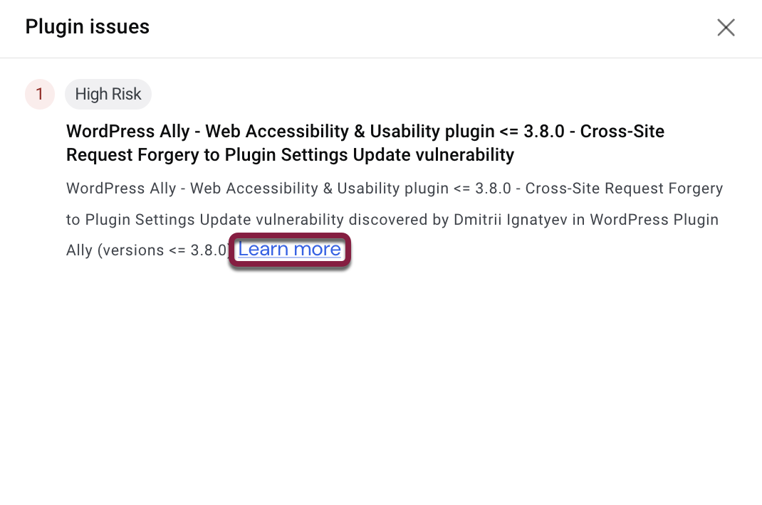 - In the Plugins view, under “Security status”, click on Issues found.