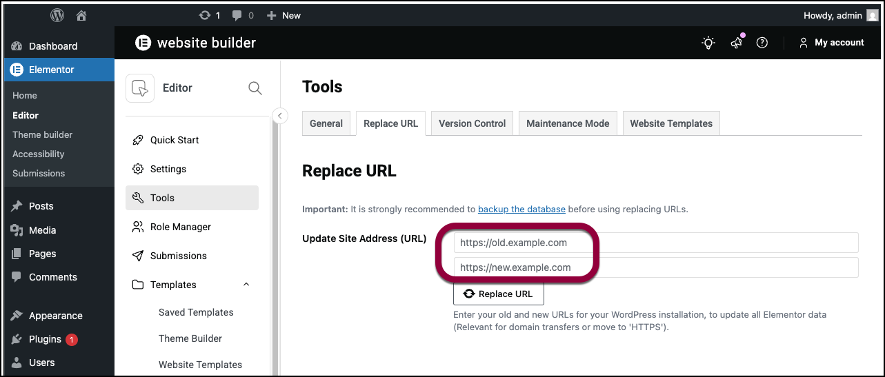 Elementor does not work after the URL is changed when migrating the website.