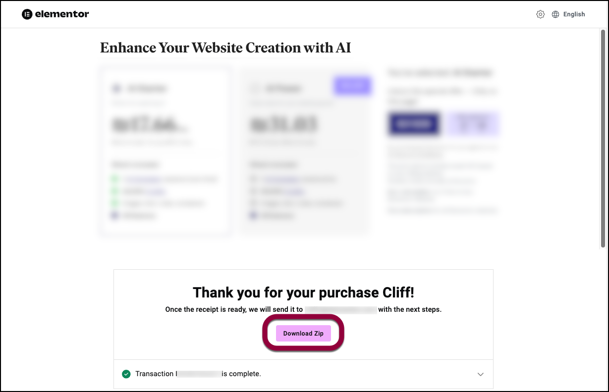 Note: During purchase you may be asked to create an Elementor account (if you don’t already have one). The email you use is important for account access and recovery, so make sure it’s an address you can access. You can change it later (see: Change the email address of your Elementor account).