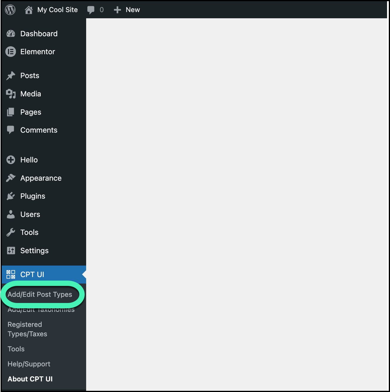 - In WP admin, navigate to CPT UI>Add/Edit Post types.