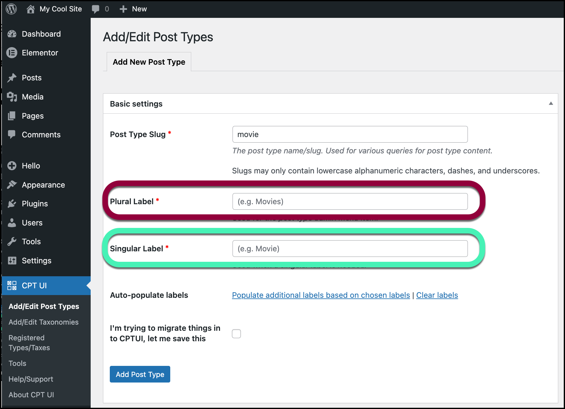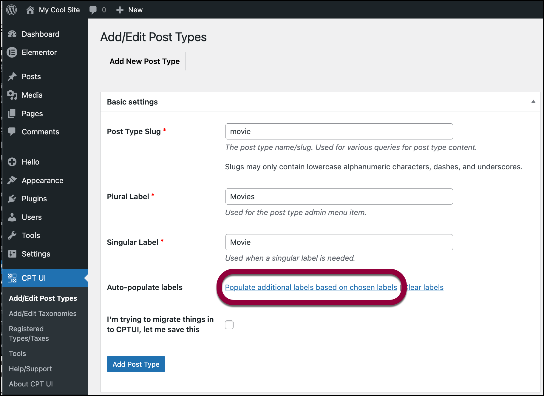- Click Add Post Type.