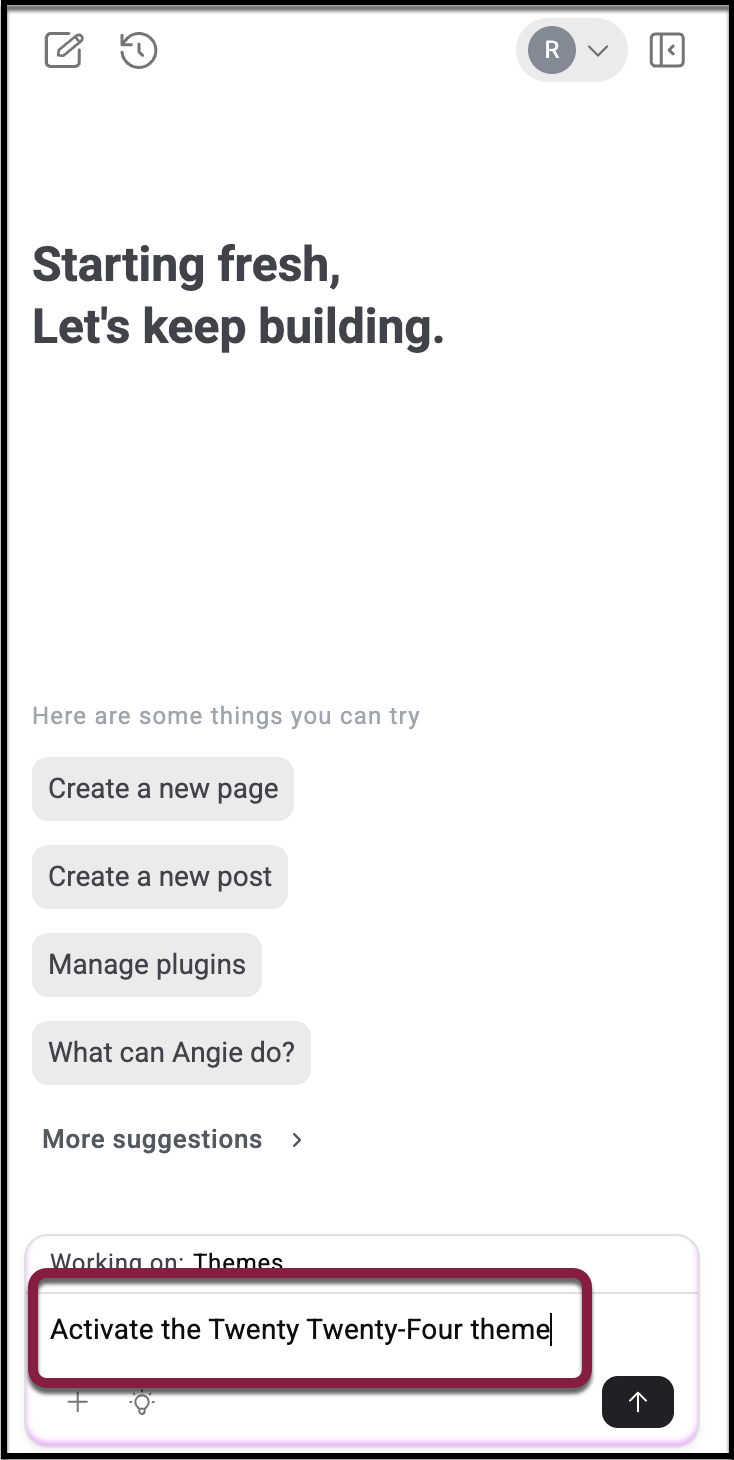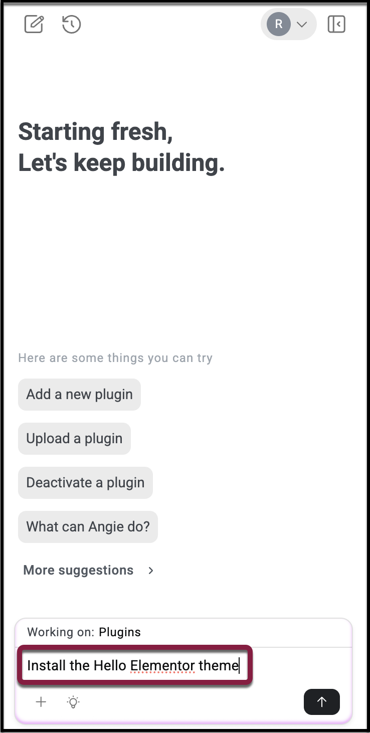 Note: As an AI tool, Angie provides context-sensitive results. Therefore, the results you get will almost certainly differ from the examples in this article, even if you enter the same prompts.