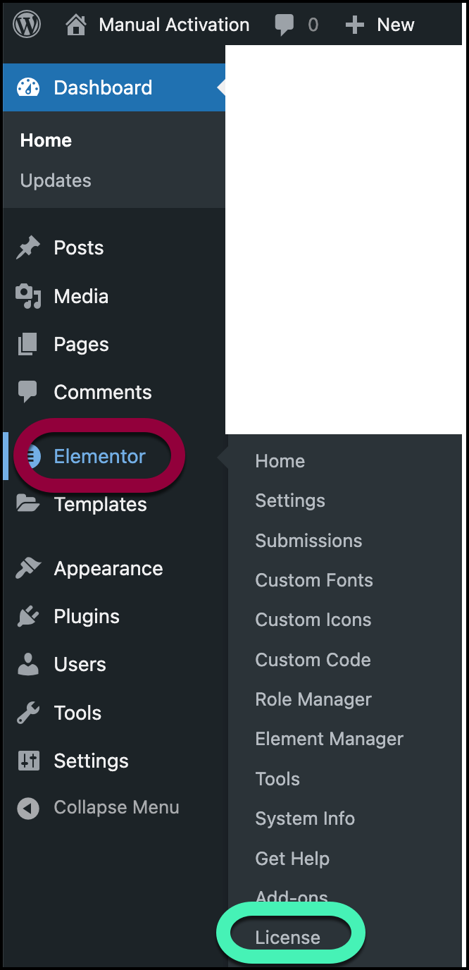 In order to manually connect Elementor Pro, you must be using the most recent versions of Elementor, Elementor Pro and WordPress.