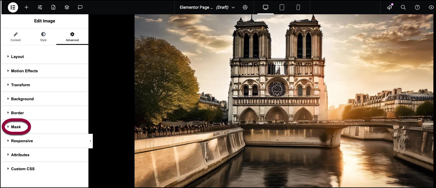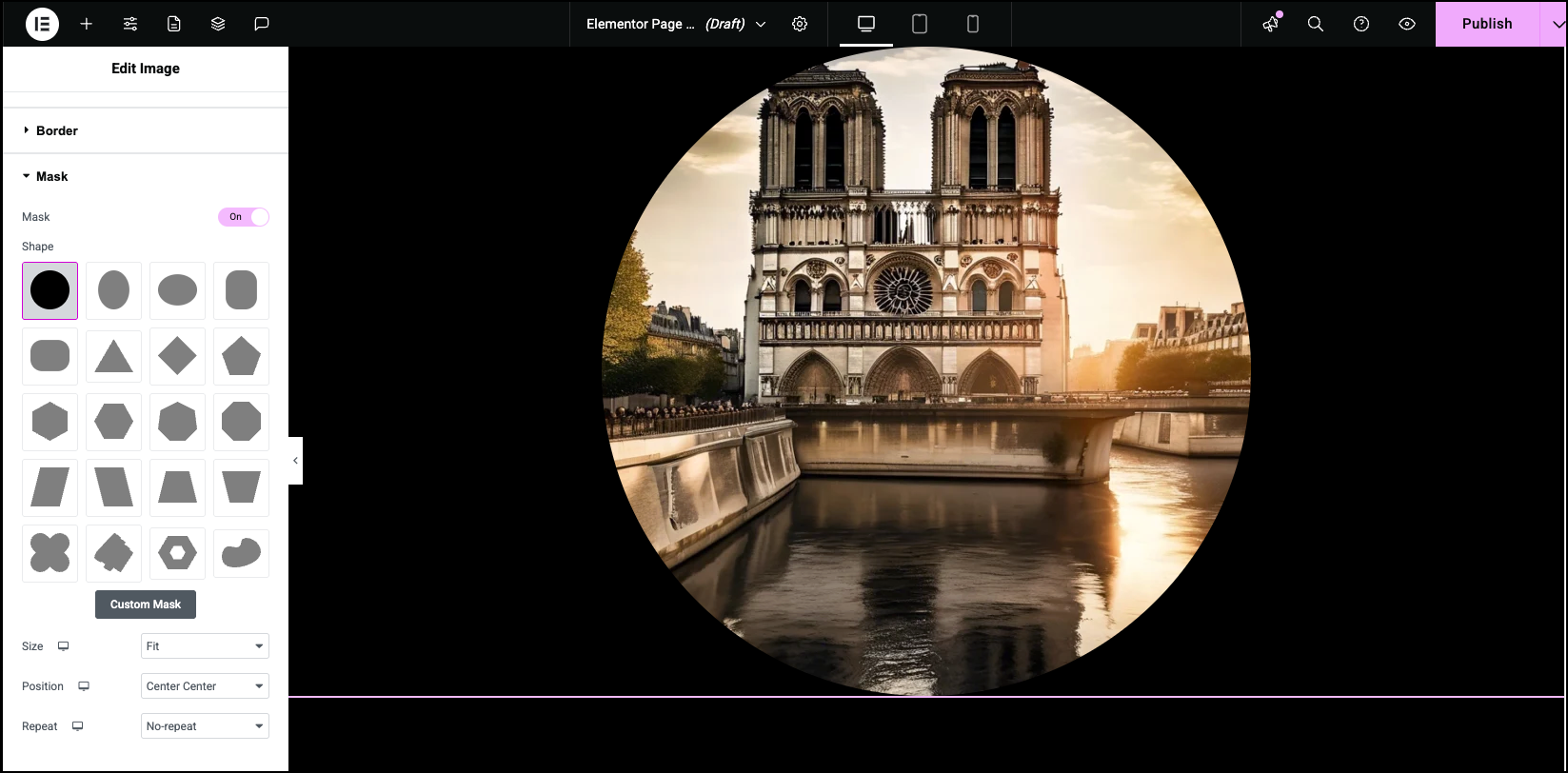 The Elementor Mask Option allows you to add a mask to any element. Create stylish designs for any element you want like an image, video, Google Maps, and more using the preset shapes. Create your own masks in PNG or SVG formats and upload them for even more possibilities.