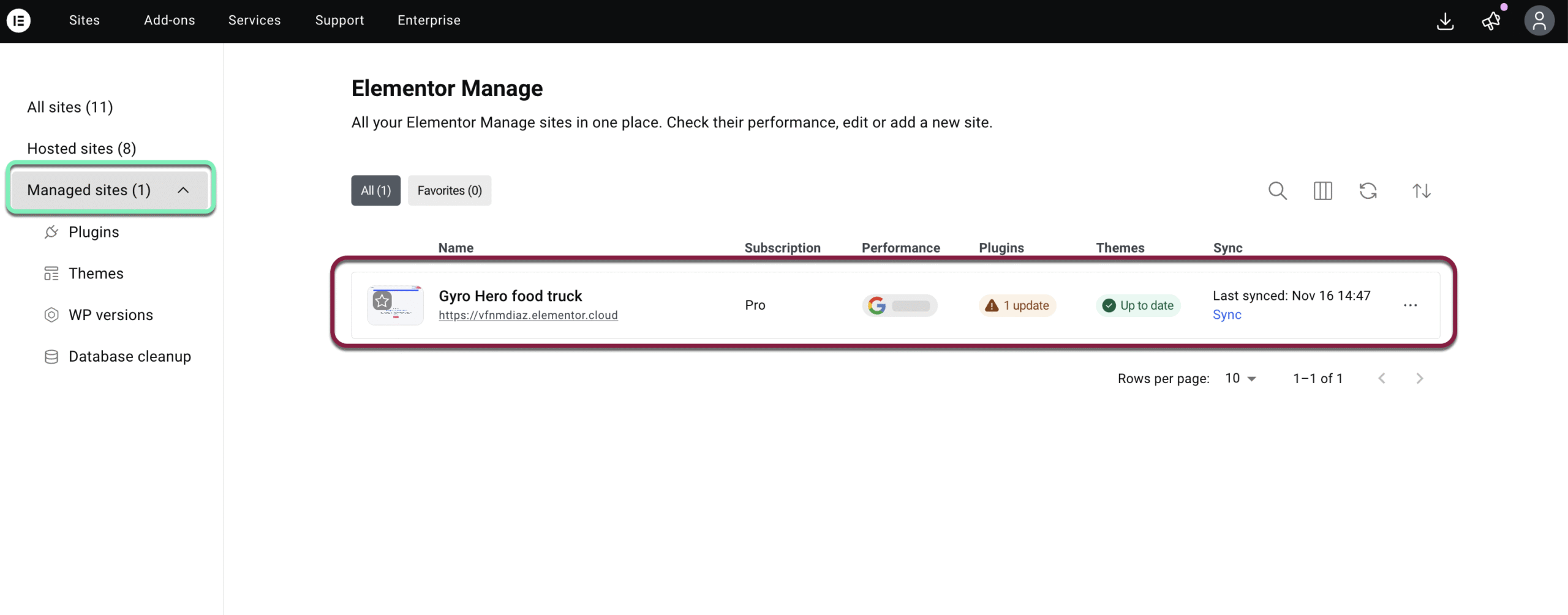- Under the Sites tab in the top bar, go to Managed Sites.