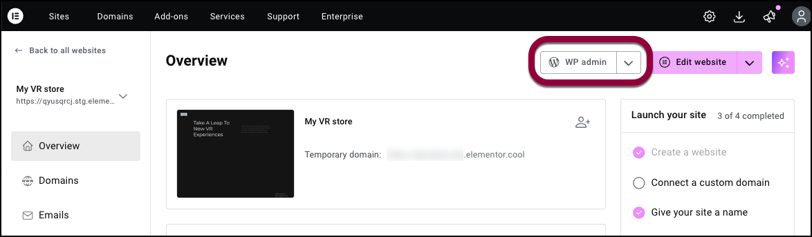 Elementor works in conjunction with, and expands upon, the WordPress Content Management System. You’ll need to access WP Admin (WordPress Admin) to create new pages and posts, access your pages and posts, manage your site’s access, control many of your site’s settings and more.