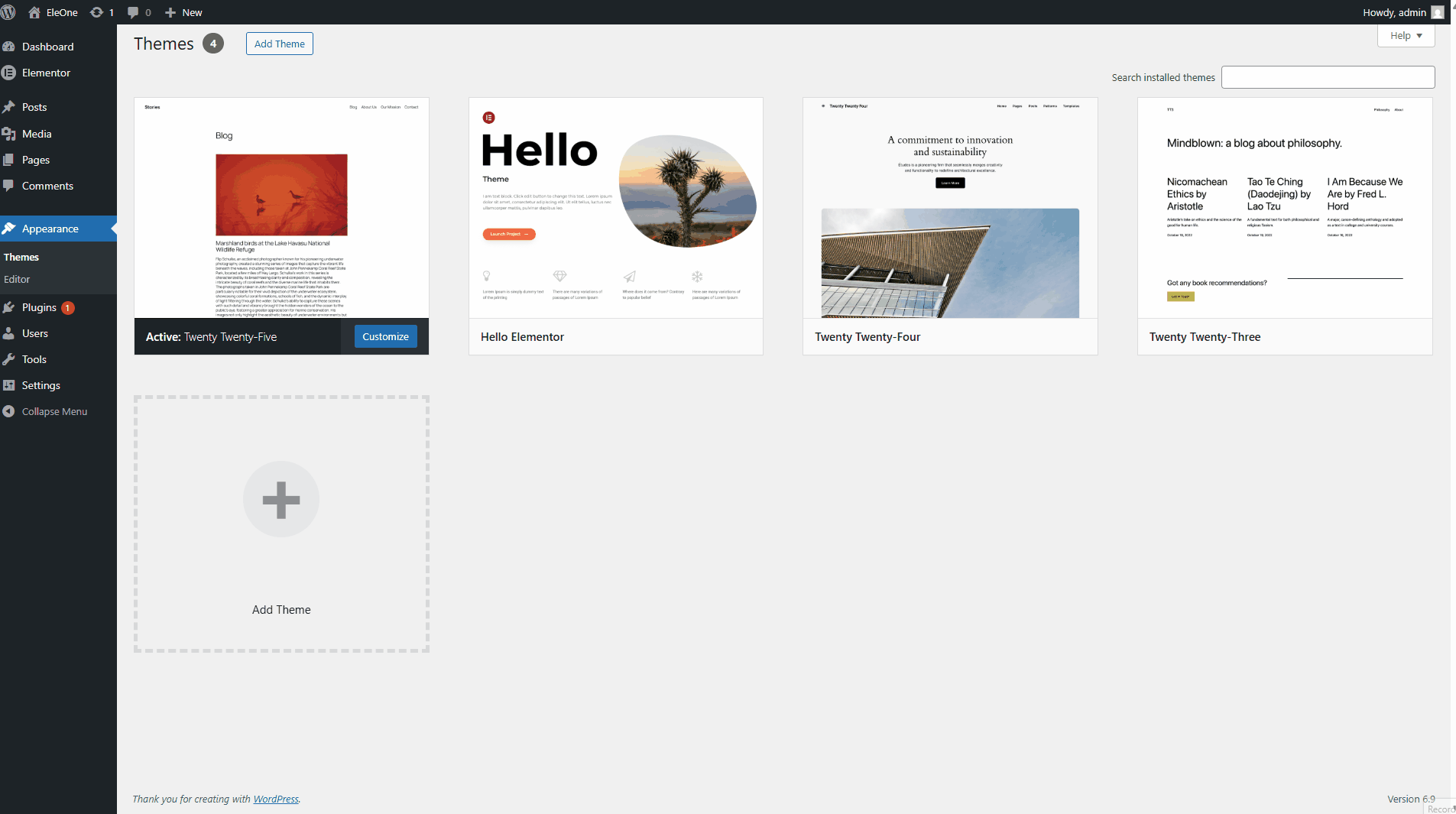 - Hover over Appearance and click Themes
