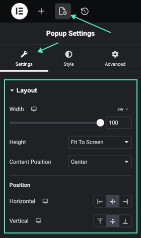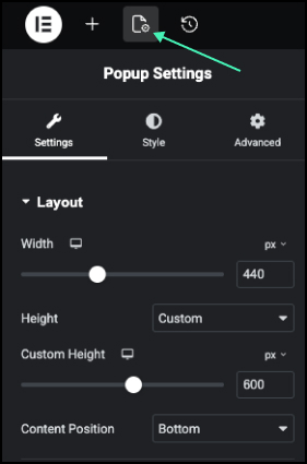 - In the Elementor Editor, click the Settings icon.