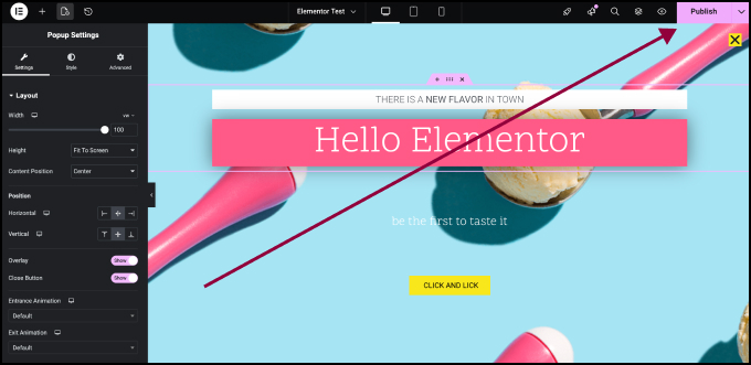 - Click Publish to save and publish the popup.