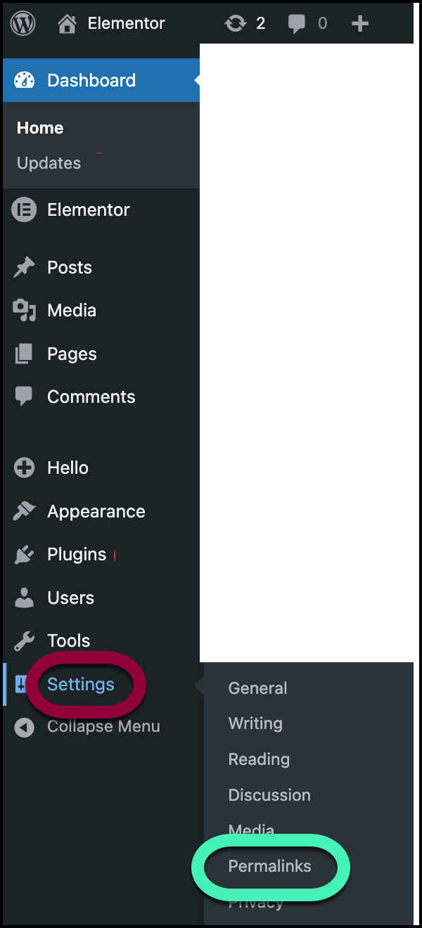 - From WP Admin, navigate to Settings>Permalinks.