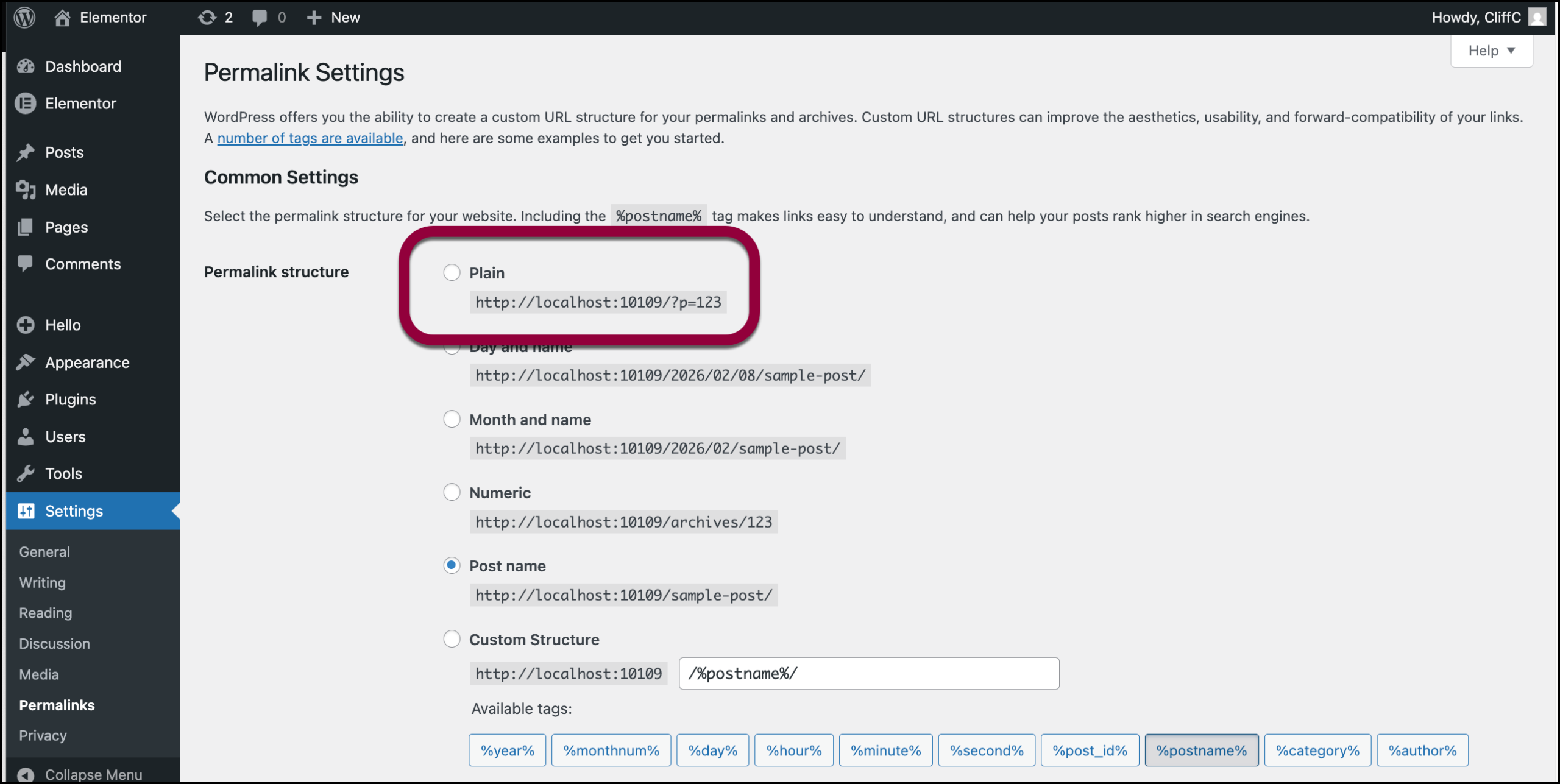 - If it is set to Plain, switch to another option, such as Post name.