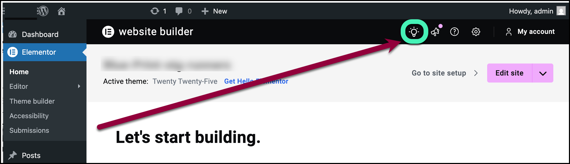 - From WP Admin, navigate to Elementor>Home.