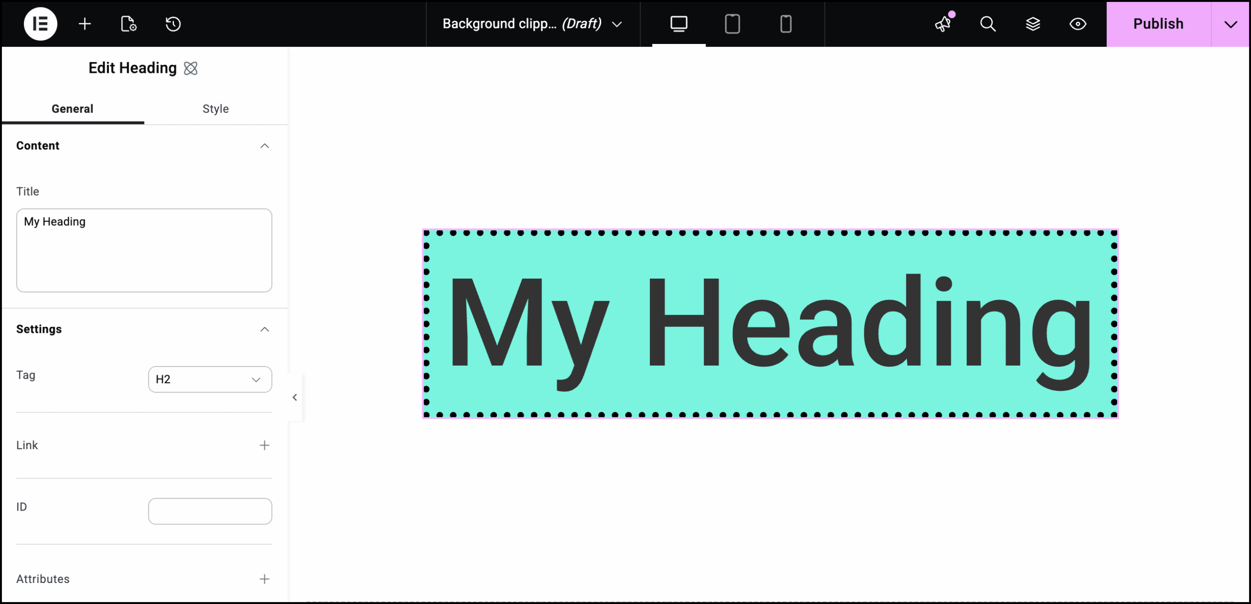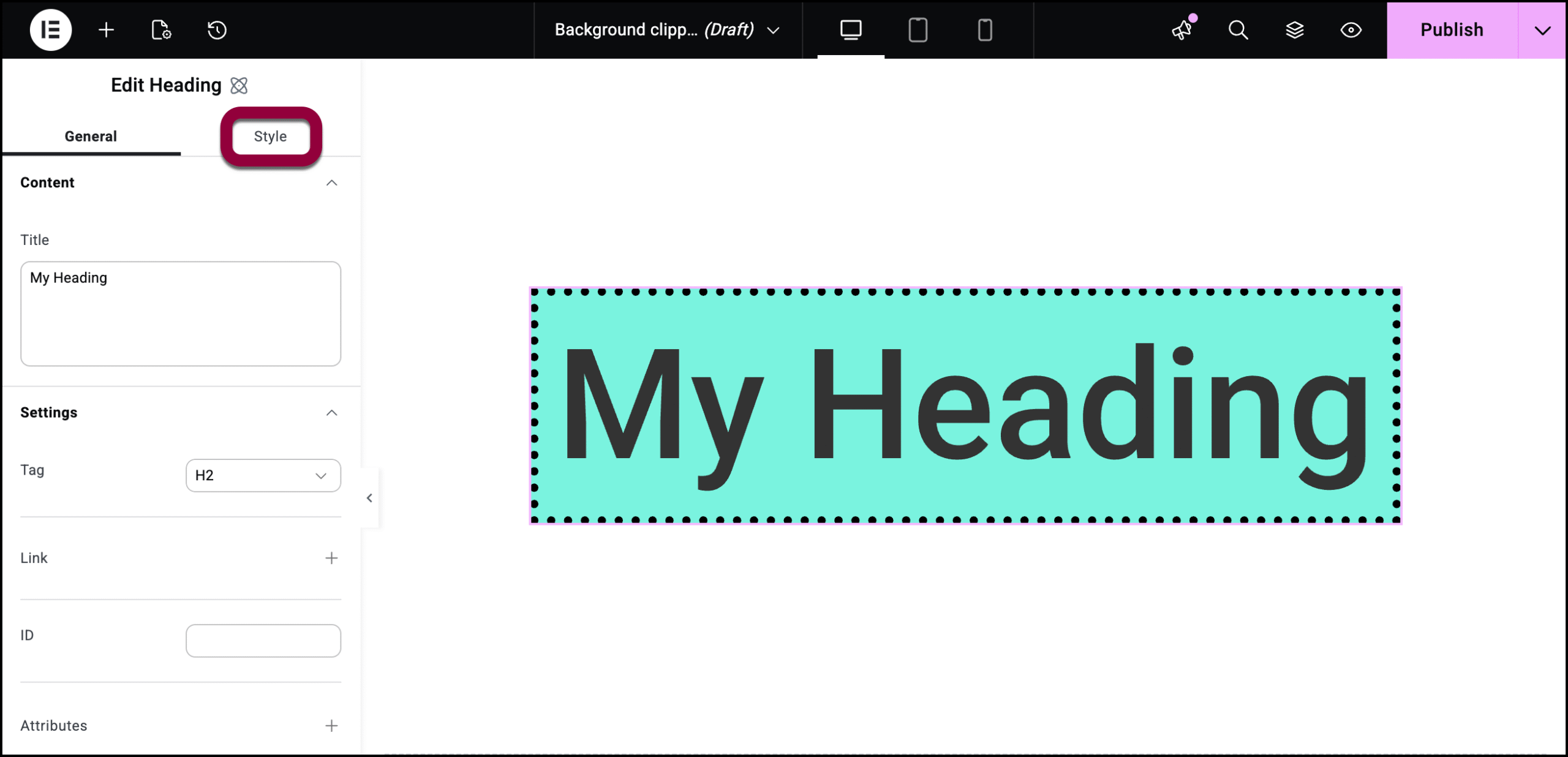 - Text: Only applicable to elements that contain text. The clipping effect changes the background around the element’s text.