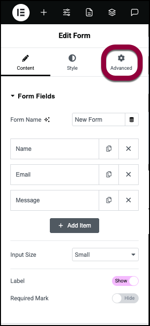 - Open the page containing the form in the Elementor Editor and select the form.