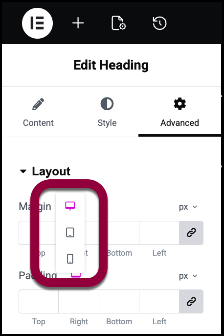 - Check the Hide On toggles to see what devices the element is hidden on.