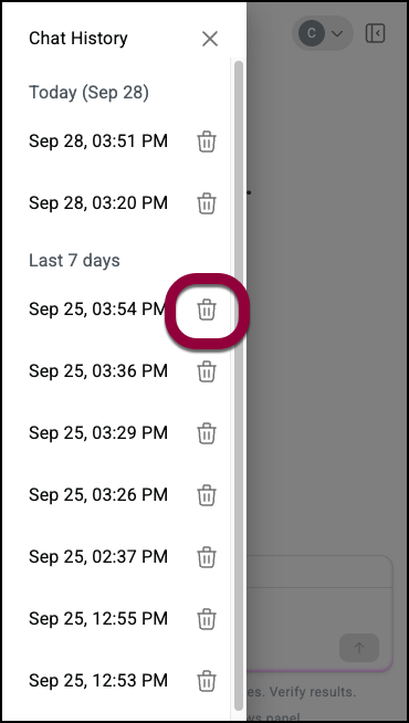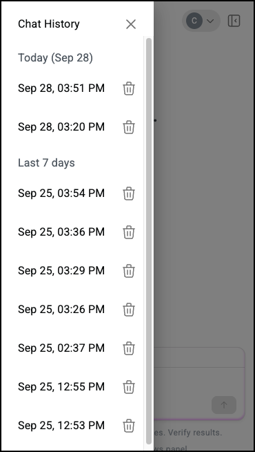 - Click a time and date to see the prompt you entered and the results of those prompts.