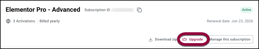 - Locate the subscription you want to upgrade and click Upgrade.