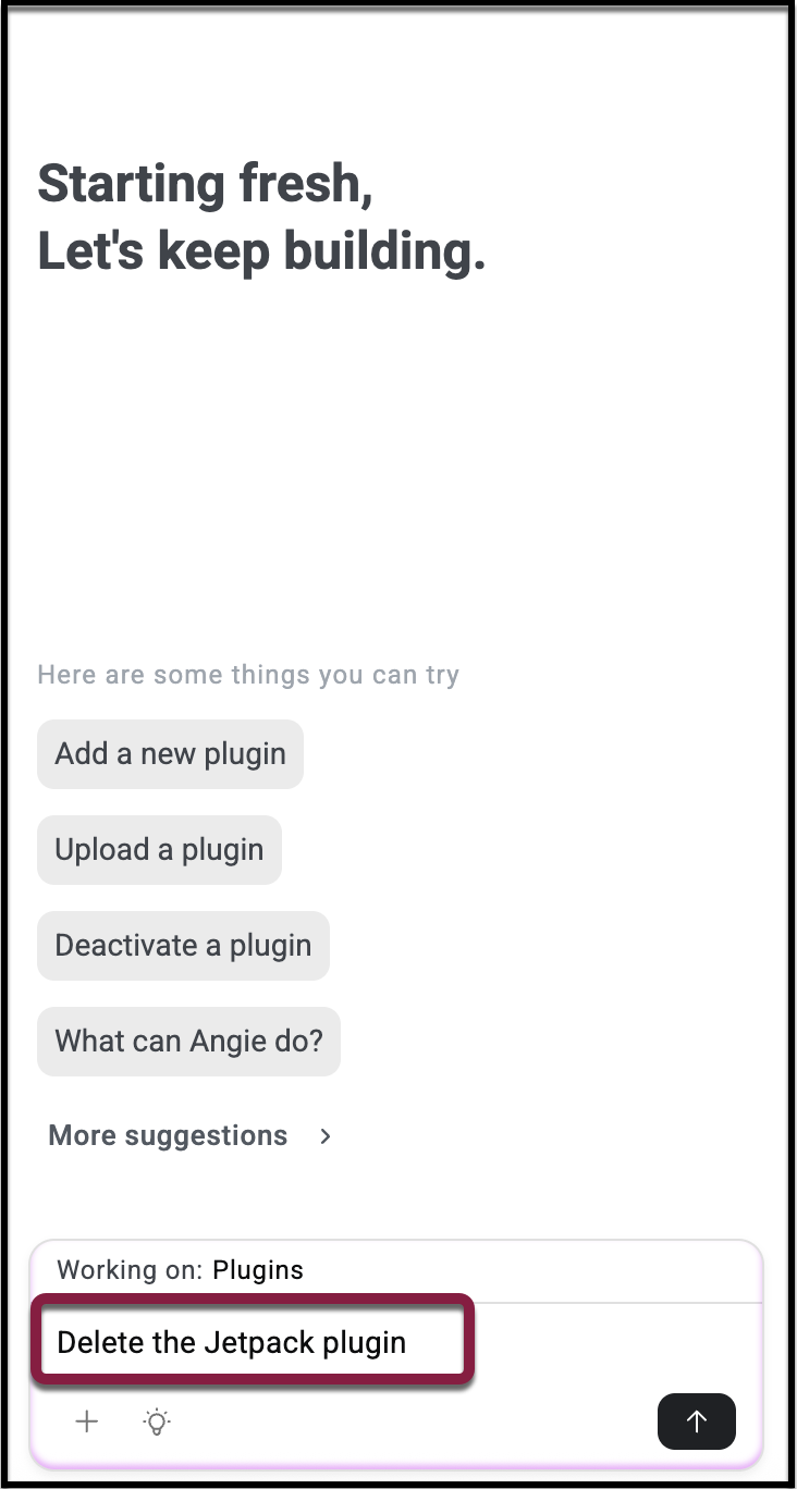 - Prompt Angie to delete a plugin. For example, in the prompt box, type: