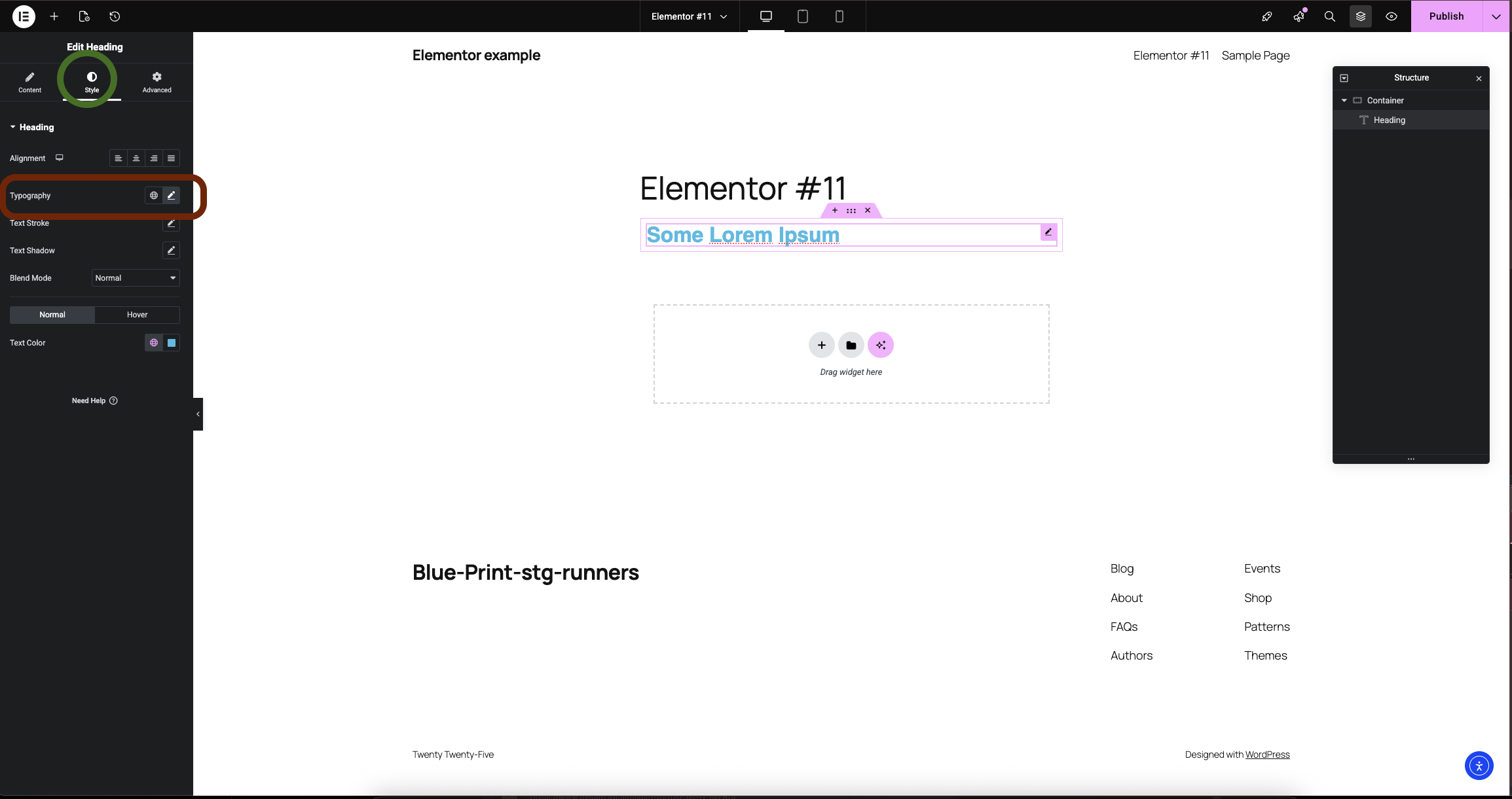 - In the panel, select the Typography option. This option can usually be found in the Style tab.