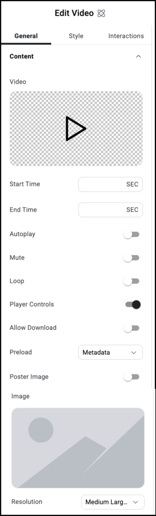 Toggle on if you want to display an image representing the video. You will also need to upload an image by clicking the Image field.