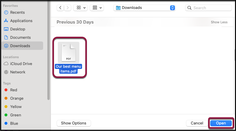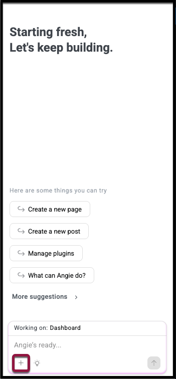 - Click the + icon in the bottom left corner of the Angie prompt box. This opens the file picker.