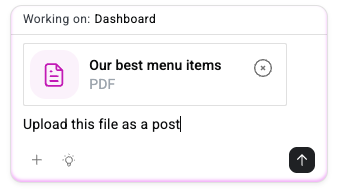 - Add the prompt “Upload this file as a post” and make sure to give it a title. Add any other details you’d like and send the prompt.