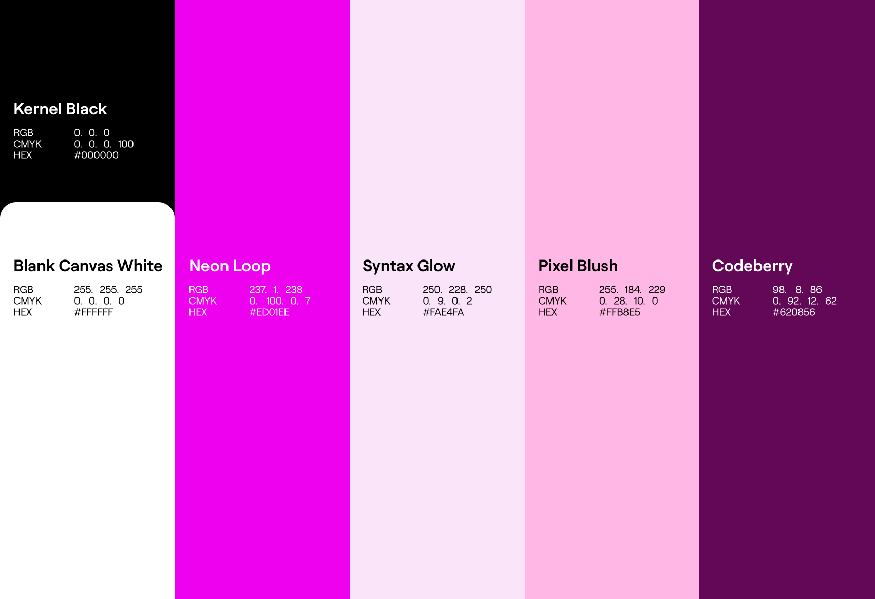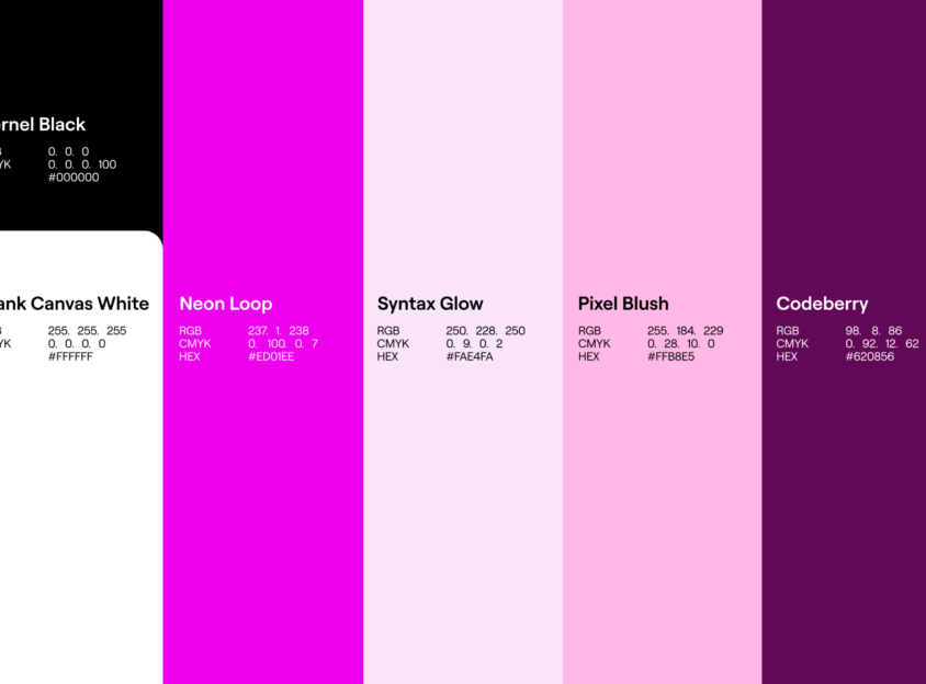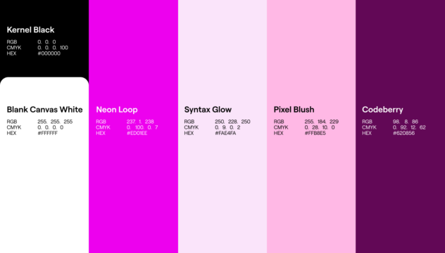 The logo in “Blank Canvas White” is our negative logo, to be used on our deeper colors (“Codeberry” and “Kernel Black”).