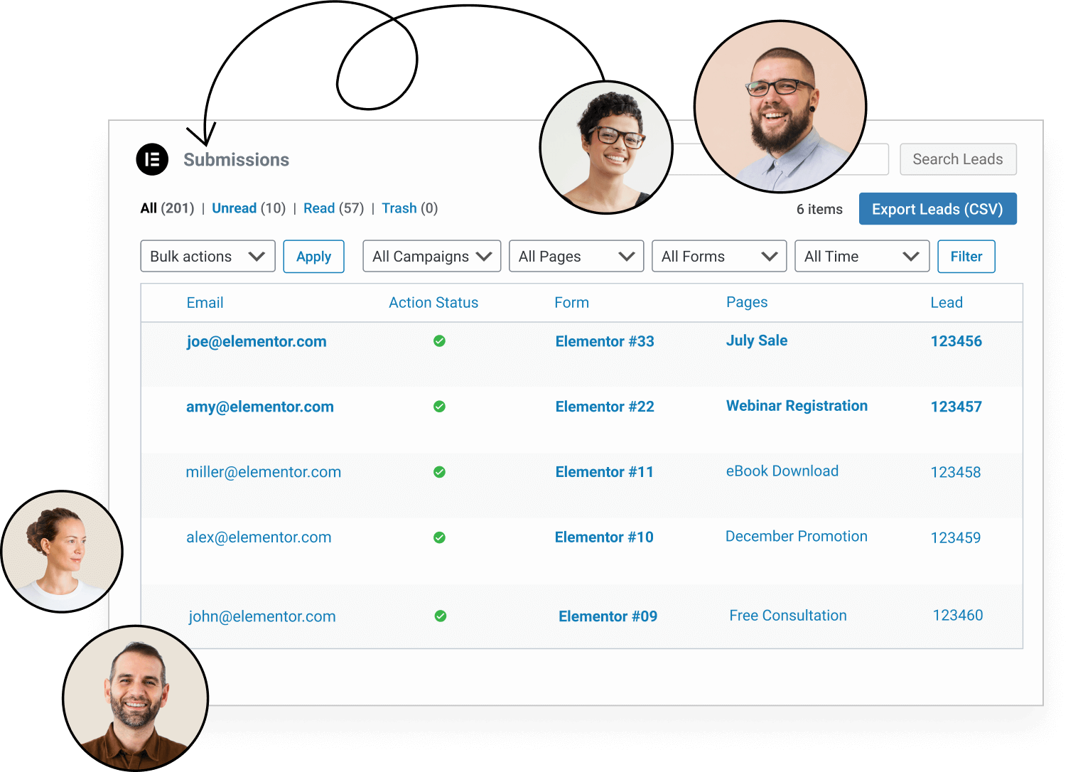 Collect information and store it directly in your Elementor account, or integrate your favorite marketing & CRM tools.