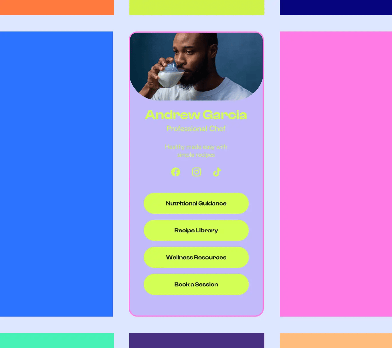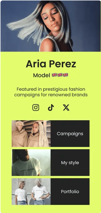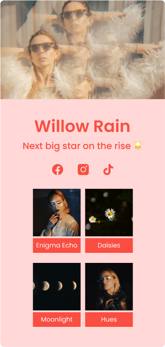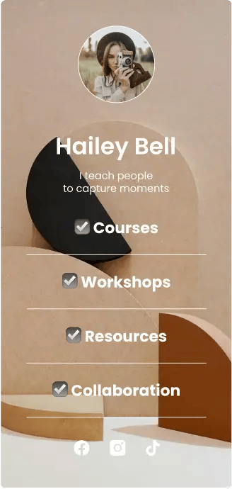 Create an memorable online presence with seven different Link in Bio layouts that fit your brand and marketing needs.