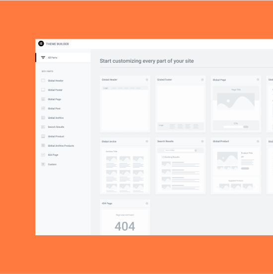 Design custom headers, footers, single pages, single posts, archive & even WooCommerce pages, no code required.