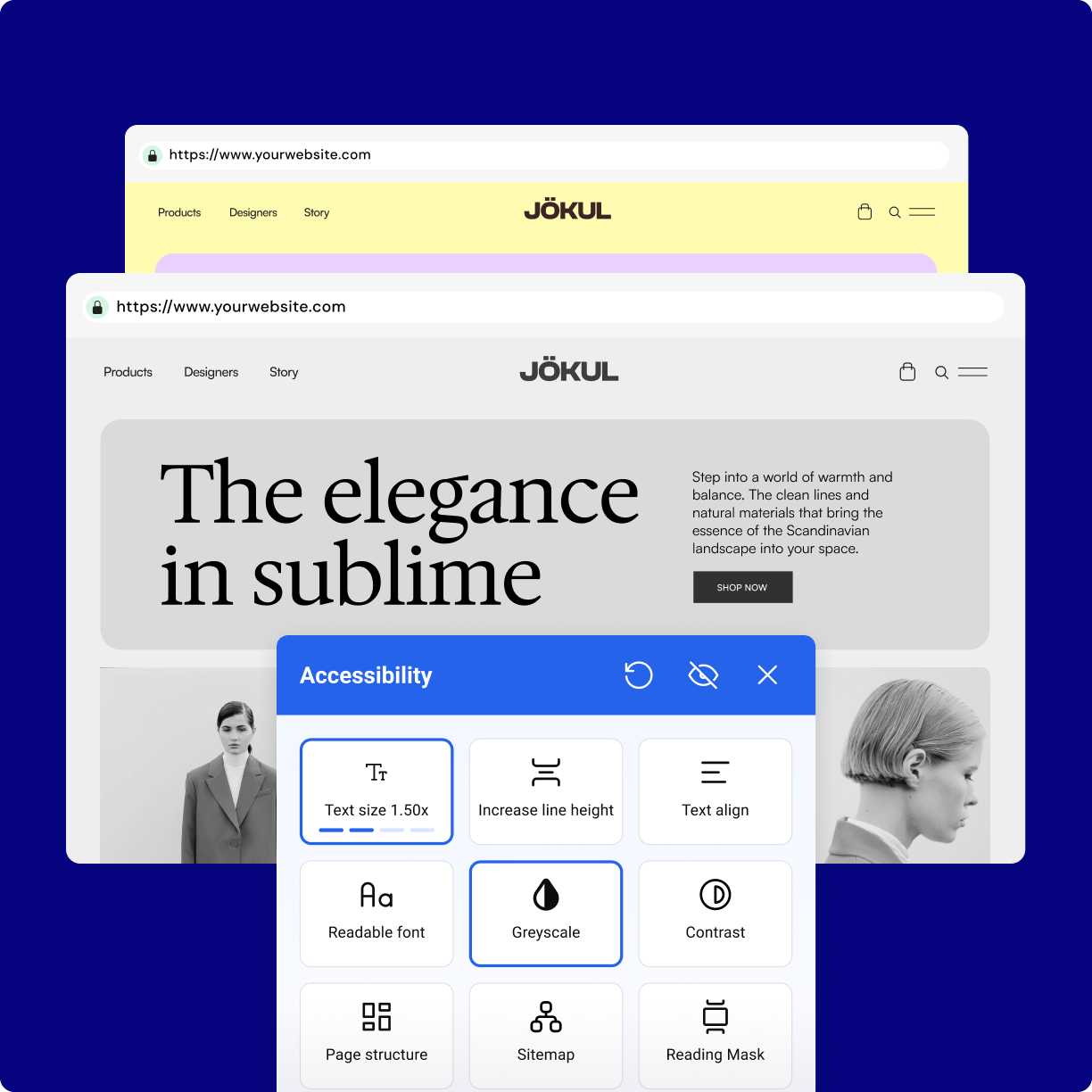 - Screen Reader (not included)A tool that reads website content aloud for visually impaired users, improving site navigation and accessibility.