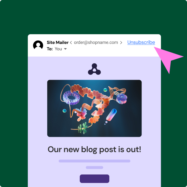 Enable unsubscribe headers, track unsubscribed recipients in a suppression list, and add addresses manually, if needed.