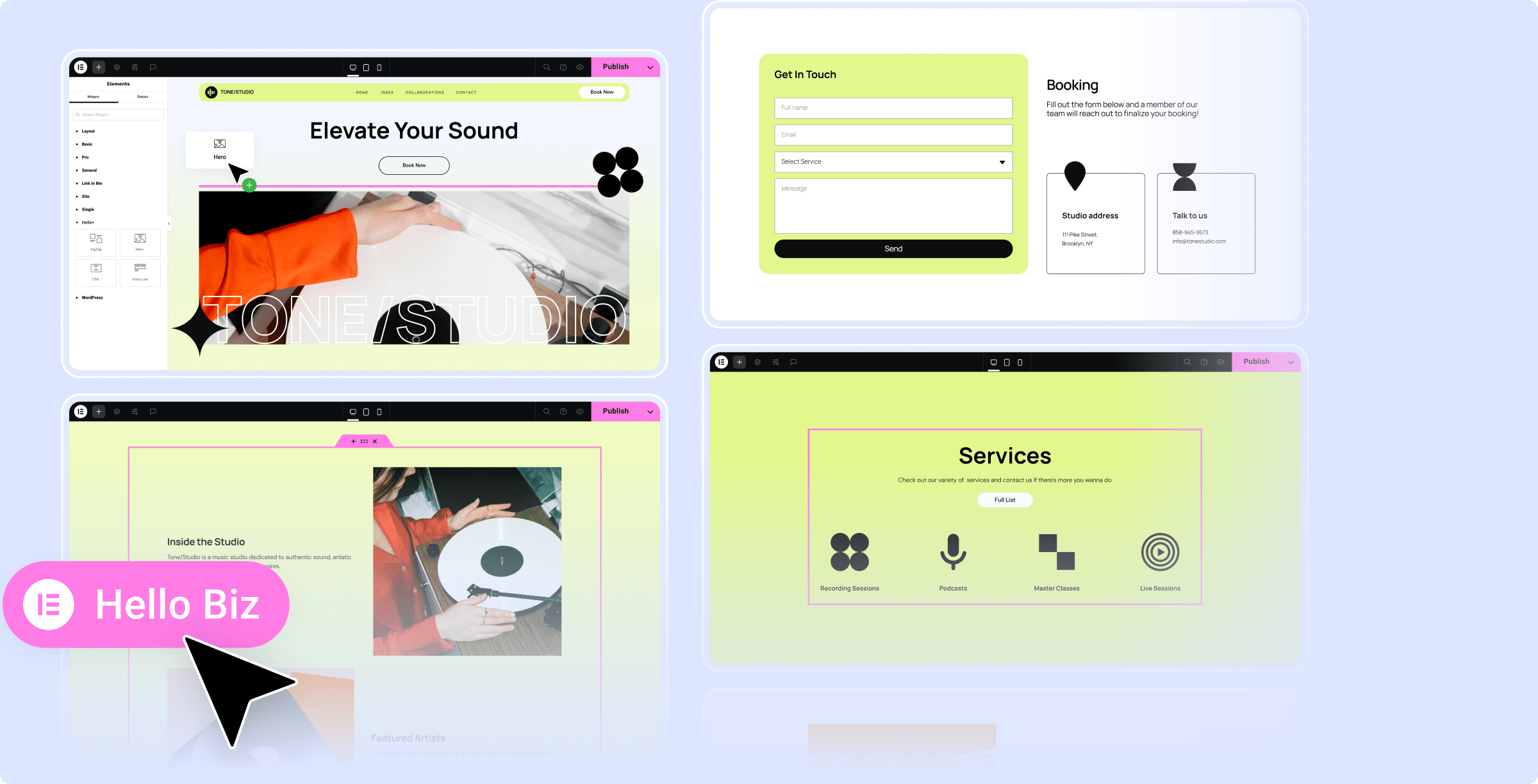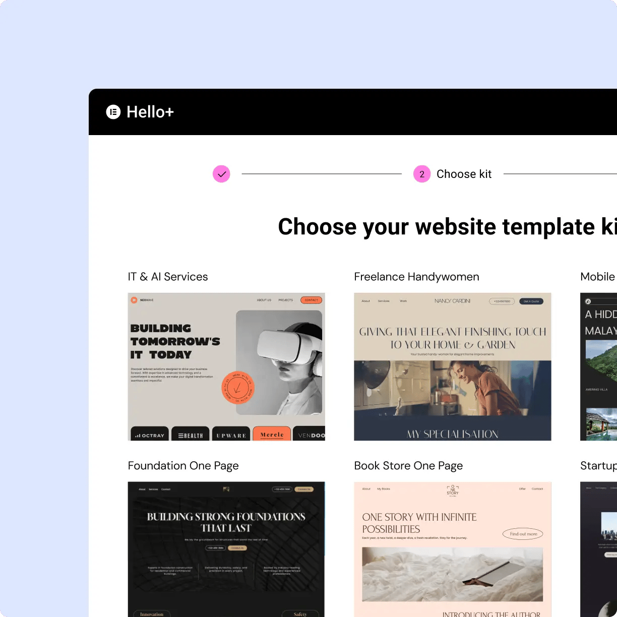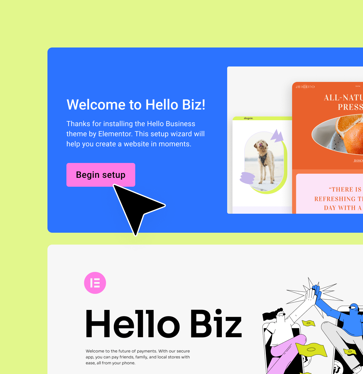 Elementor’s powerful visual editor is built on top of WordPress. Once you’ve set that up, you’ll be ready to start working with the Hello Biz.