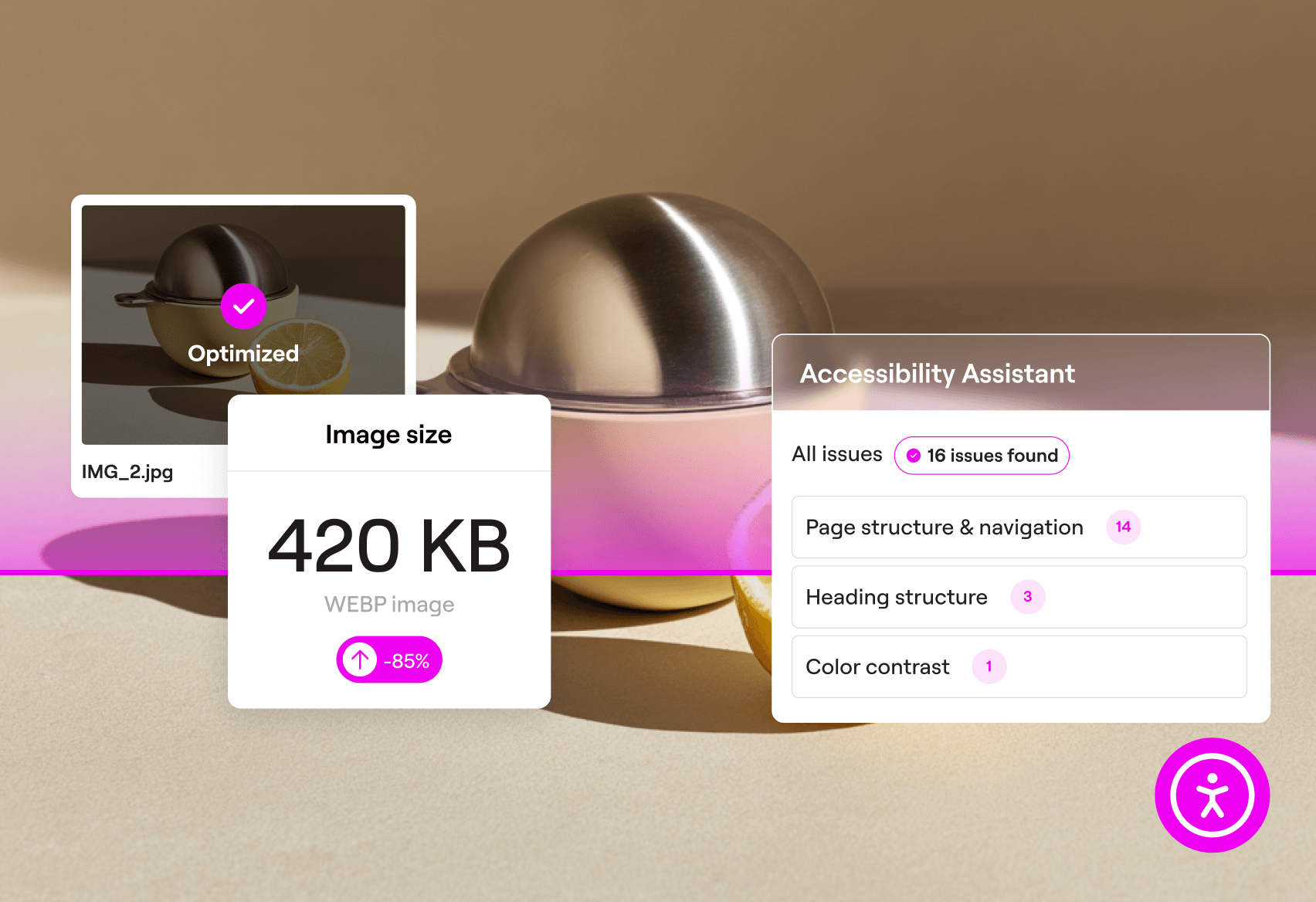 Optimize your site with tools that boost performance, SEO rankings, and inclusive user experiences.