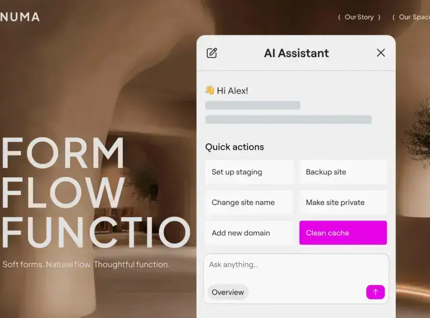 - AI-Powered hosting (included)Get assistance with all your site management needs from an intelligent AI layer.