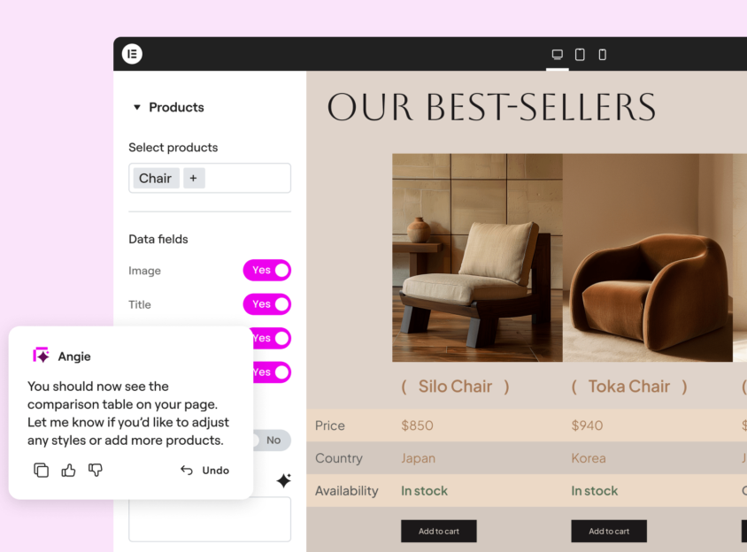 Handle updates through context-aware chat. Angie does it for you, understanding every page, plugin, and product.