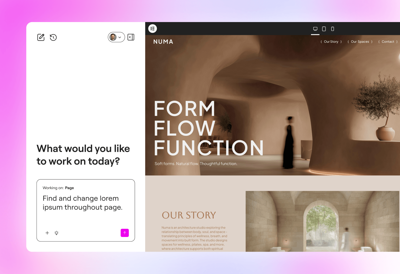 Elementor One. A new website building experience.