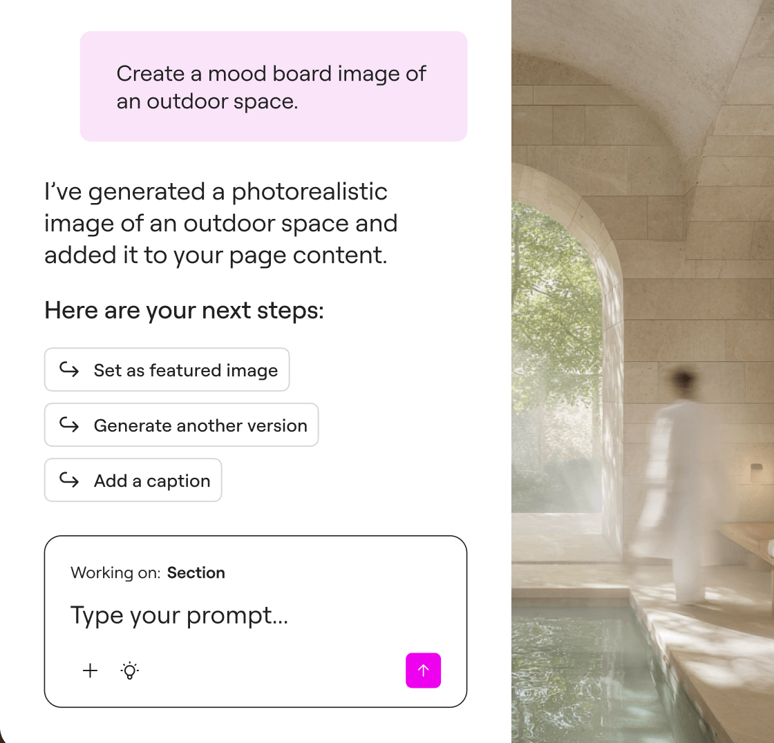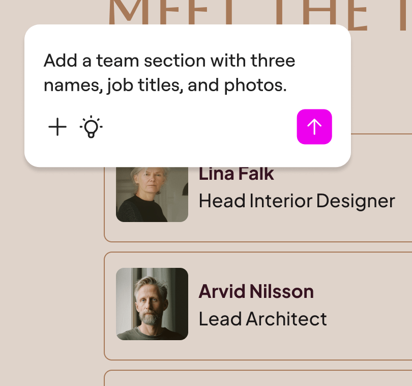 Turn any idea into a full WordPress page or block instantly. Create custom layouts, widgets, and post types.