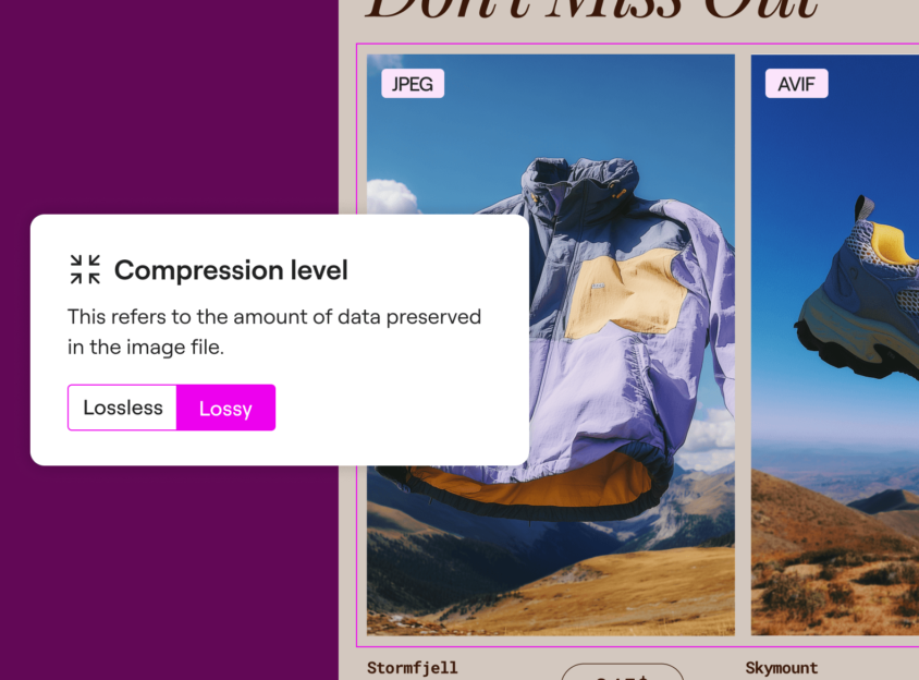 Fine-tune image compression. Choose lossless compression to retain every detail for high-quality visuals, or lossy compression for faster image-heavy pages. With automatic metadata cleanup.