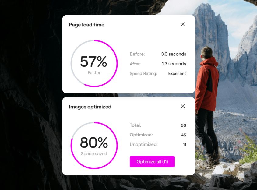 Trusted by 1M+ sites to deliver lightning-fast pages through integrated, automated image optimization in WordPress.