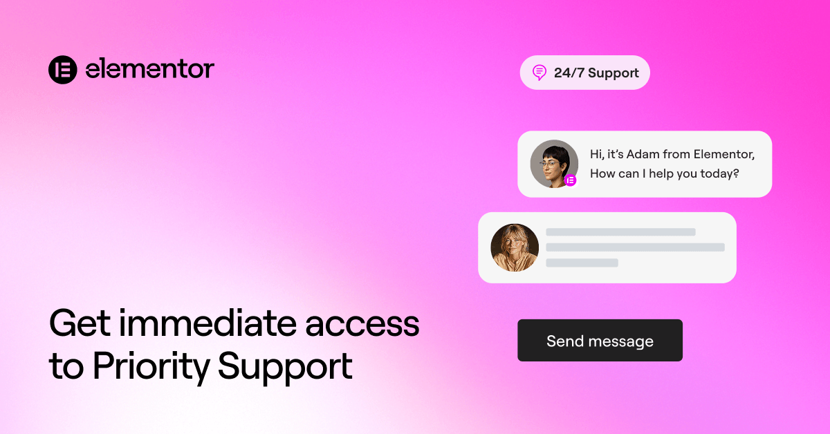 Elementor support Get immediate access to Priority Support Get access to dedicated Elementor experts who prioritize your success. Priority Support ensures your WordPress and Elementor sites run smoothly, no matter what. Upgrade now Expert support to help
