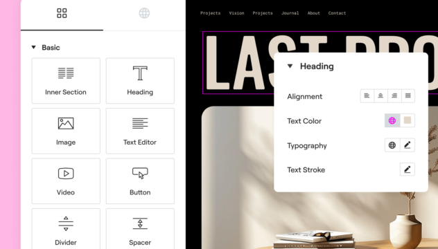 Deliver stunning, custom websites. Design intuitively with Elementor’s no-code drag & drop Editor, 100+ widgets, motion effects, and custom code, for pixel-perfect creative control.