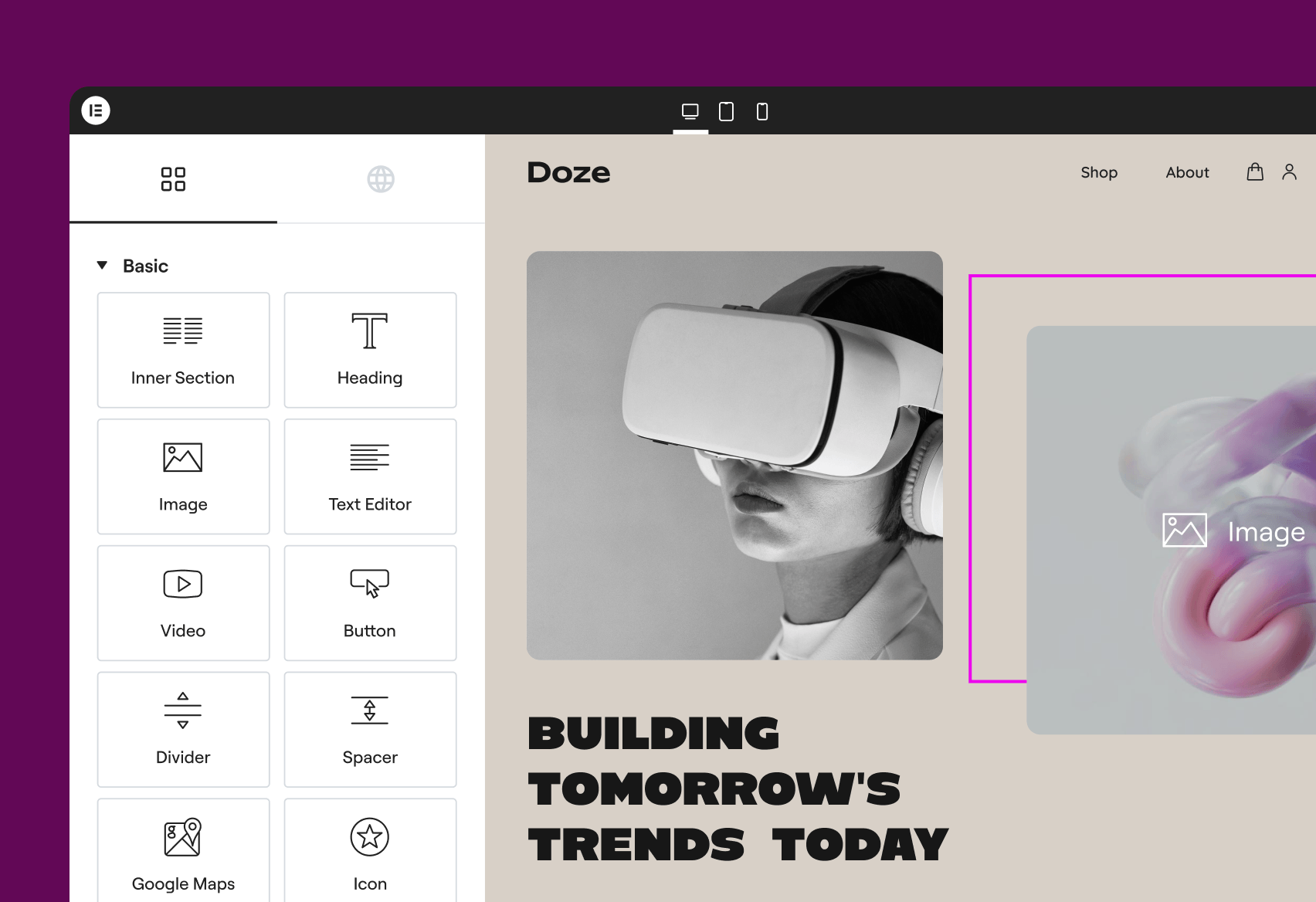 Tap into professional templates, Theme Builder, and advanced widgets to design every part of your brand experience. Add testimonials, pricing tables, captivating tabs, and more. All seamlessly within Elementor’s interface.