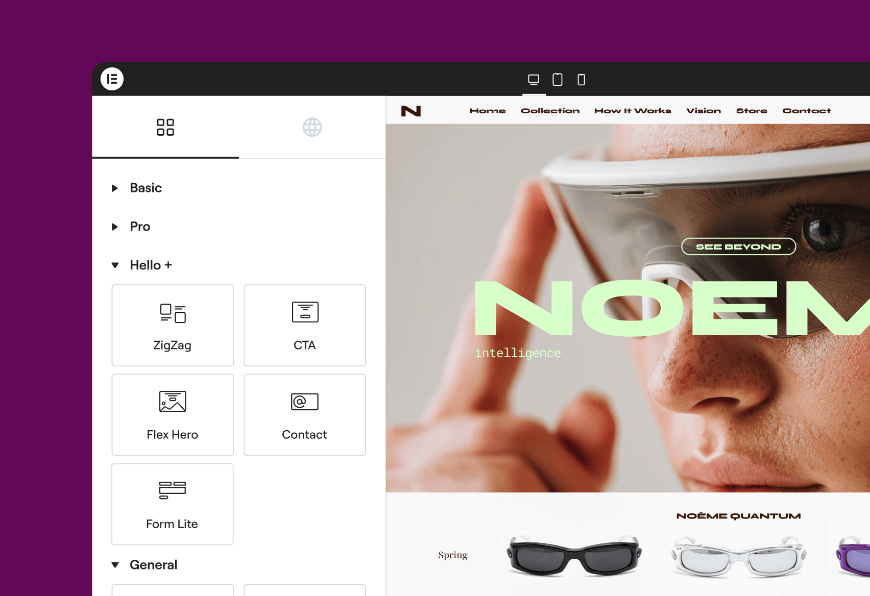 Customize your site by editing content and dropping in full sections using Hello+ widgets for faster design.